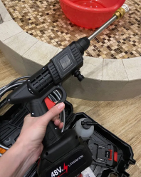 Многофункциональная минимойка с аккумулятором 21 V, который обеспечит до 80 минут надежной и беспрерывной работы. Вы можете вымыть целый автомобиль, не беспокоясь, что устройство разрядится в самый неподходящий момент.